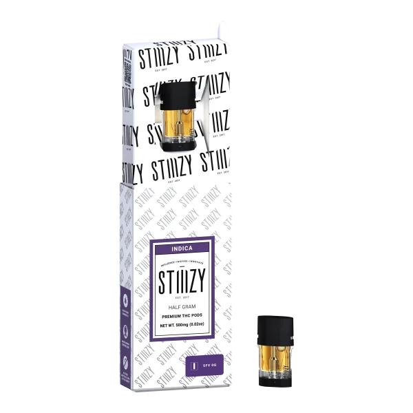 STIIIZY SFV OG UK is a 0.5g THC vape pod featuring the classic San Fernando Valley OG strain’s earthy pine and citrus flavours.
